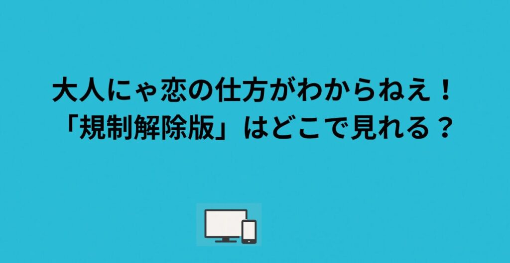 「大人にゃ恋の仕方がわからねえ!の規制解除版って本当にあるの?」「どこで見られるの?」と気になっている方へ、結論からお伝えします。