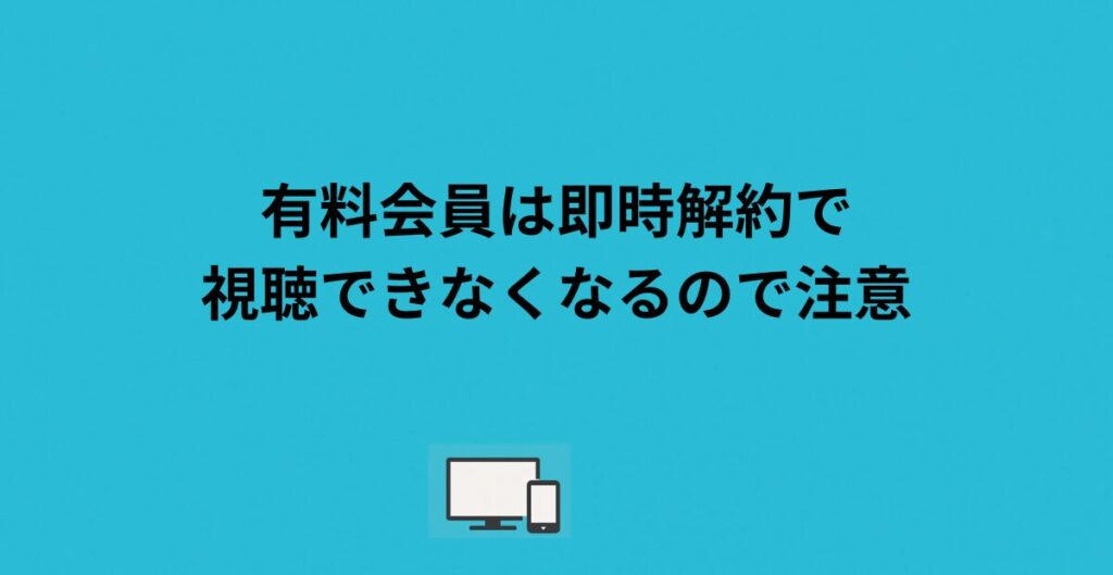 1. 有料会員は即時解約で視聴できなくなるので注意
