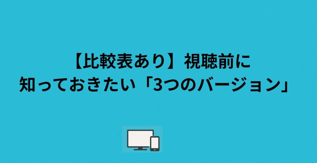 この記事では、通常版との違い、配信サービス比較、口コミ評価、そして最もお得に楽しむ方法まで、初心者にもわかりやすく徹底解説します。