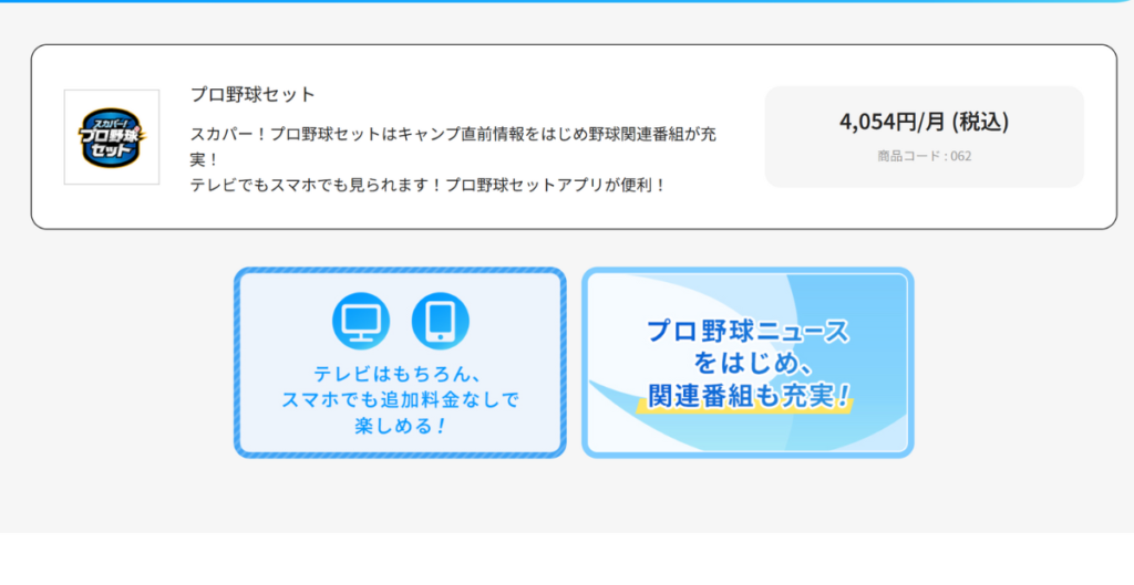 手順② スカパー申込ページから「プロ野球セット」を選択