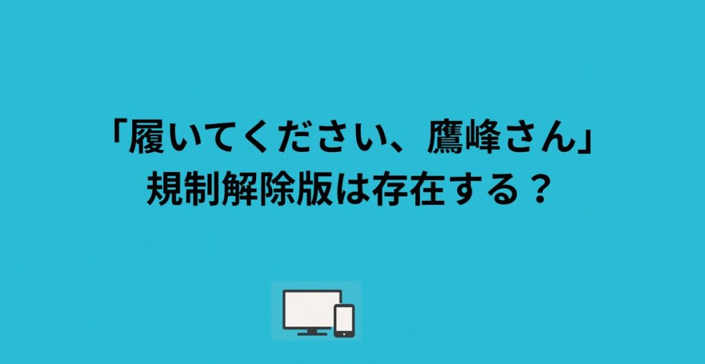 「履いてください、鷹峰さんって規制解除版があるって聞いたけど、本当?」 そんな疑問を持ってここにたどり着いた方へ、まず最初にハッキリ結論をお伝えします。