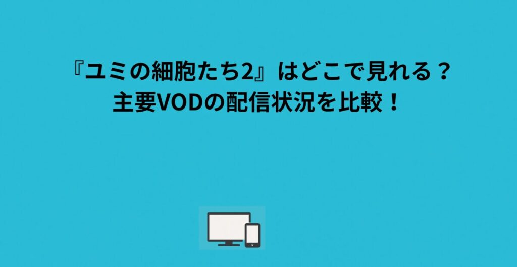 『ユミの細胞たち2』をすぐに見たい方は、まず主要VODの最新配信状況をチェックし、見放題の有無・字幕/吹替・無料体験の可否で選ぶのが最短ルートです。